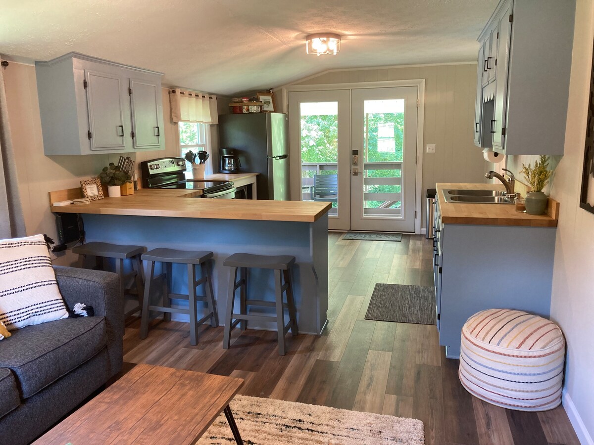 Our tiny house is located on our 2 acre homestead, where we garden and raise chickens, ducks, heritage rabbits & Nigerian dwarf goats. Designed and built by us in 2016, our tiny house is surprisingly spacious, has a cozy modern cabin feel, features minimalist decor and plenty of amenities. Our tiny house is located… 35 mins from downtown Asheville 30 mins from the Blue Ridge Parkway 45 mins from Grandfather Mtn and other top tier hiking 25 mins from the A.T. 5 mins from Burnsville