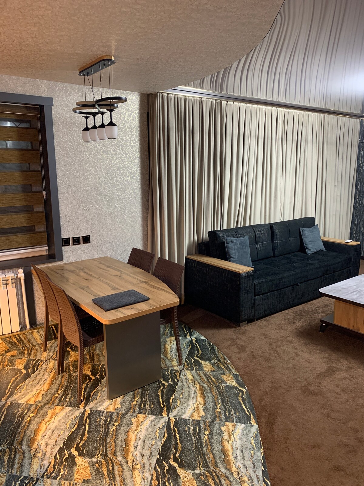 A stylish apartment for rent in a quiet area of Yangikhaet, Tashkent! Floor: 2 Rooms: 2 rooms, kitchen, studio divided into 2 spacious and cozy areas. Location: Yangihait 7, a quiet neighborhood with developed infrastructure. Everything for a comfortable life is nearby. Advantages: Everything is new, you will be the first guest. Fully ready for check-in - come and live! The apartment is equipped with all the necessary amenities for a modern person: comfortable furniture, TV, air conditioning, refrigerator, gas stove, etc.