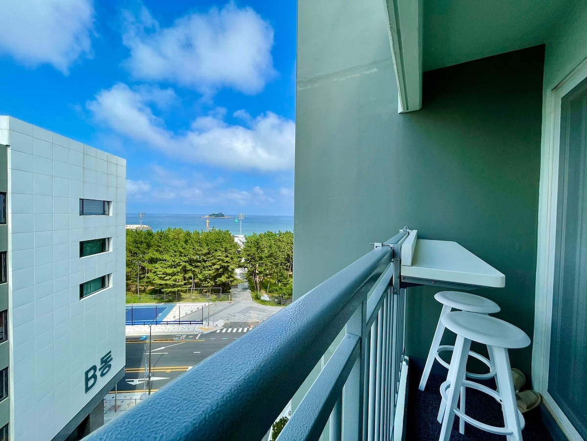 It๐ฅญ's Mangone. The only 4-seater wide in all rooms The terrace bar will be the best ocean view๐๏ธ and the most delicious tea๐ง spot for guests. The beach is 10 seconds in front of the building lobby,๐๏ธ and there are convenience stores in two places next to the building. It is a two-room, and the first room (king bed) and the second room (queen bed) provide a comfortable bed๐๏ธ with a spacious premium bed.๐ In the living room, there is a dining table๐ฝ๏ธ for 4 people Tea time and snacks, wine, whiskey, etc. Available (wine, whiskey, soju glass) It has been prepared. The cooking utensils are ready. What you can't do Grilled meat (raw meat) and bulgogi are possible. Fish stew, crab stew, etc. The smell of fish doesn't go away. Please understand that it is not possible for guests The entire room has an ocean view, and you can enjoy๐ the ocean view from the dining table to the๐ living room window. You can enjoy the sunrise from the terrace first room living room. See you soon.๐๐ป