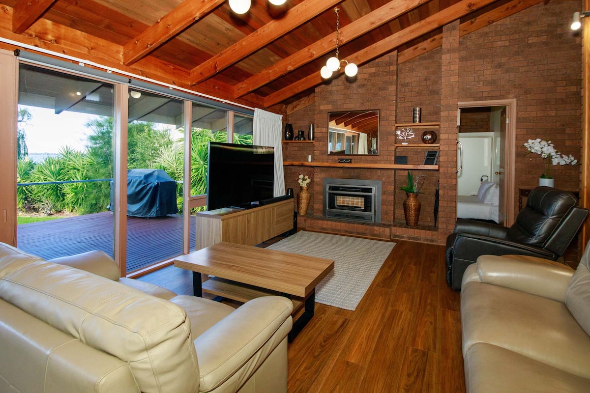 Welcome to Waterfront Oasis on the peaceful edge of Lake Mulwala. This renovated four‑bedroom home sleeps eight and offers relaxed lakeside living. Enjoy water views from the deck, easy boating and fishing access, and a public boat ramp just 300m away. Stay comfortable year‑round with air‑conditioning throughout, a cosy gas heater, two smart TVs with Foxtel and free Wi‑Fi. Outside, a large deck with BBQ awaits. Undercover parking and close to shops and Yarrawonga. Unwind at Waterfront Oasis.