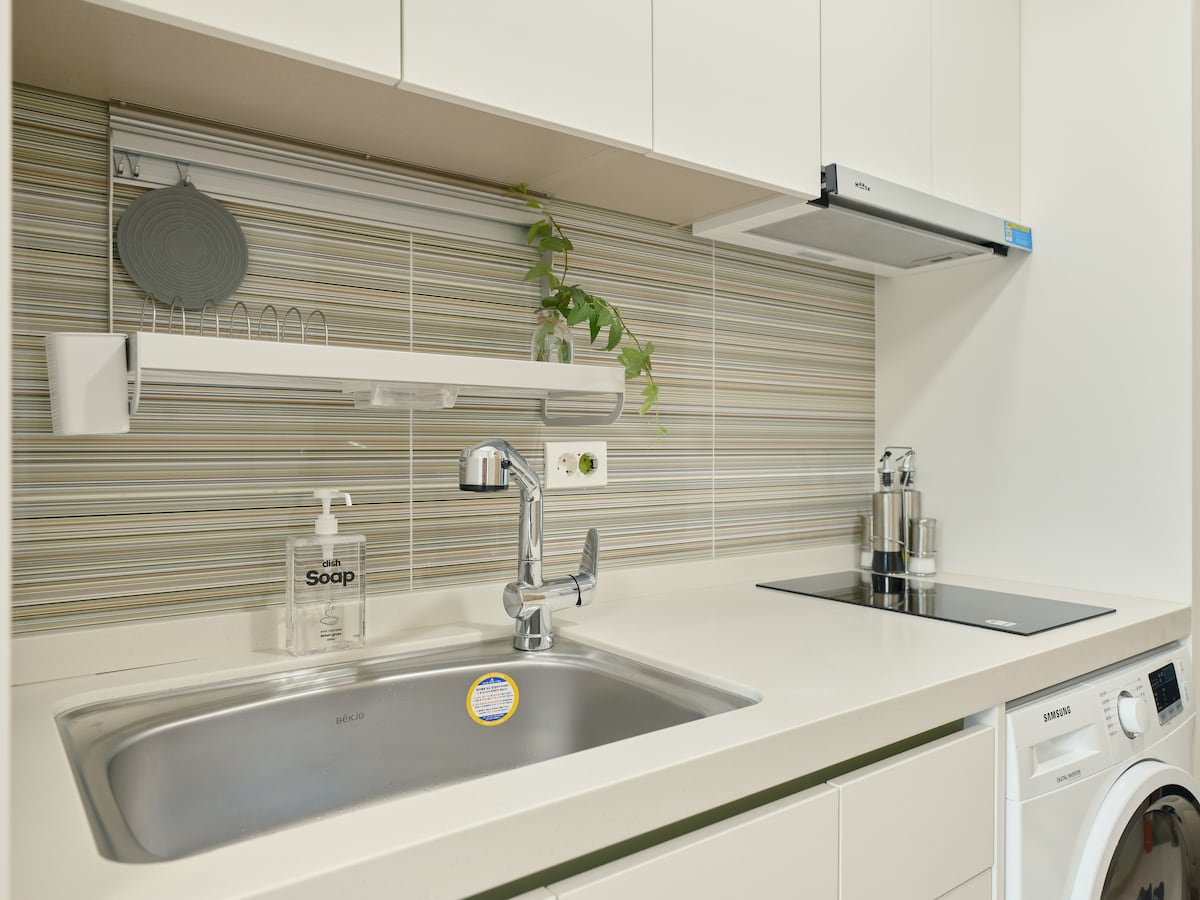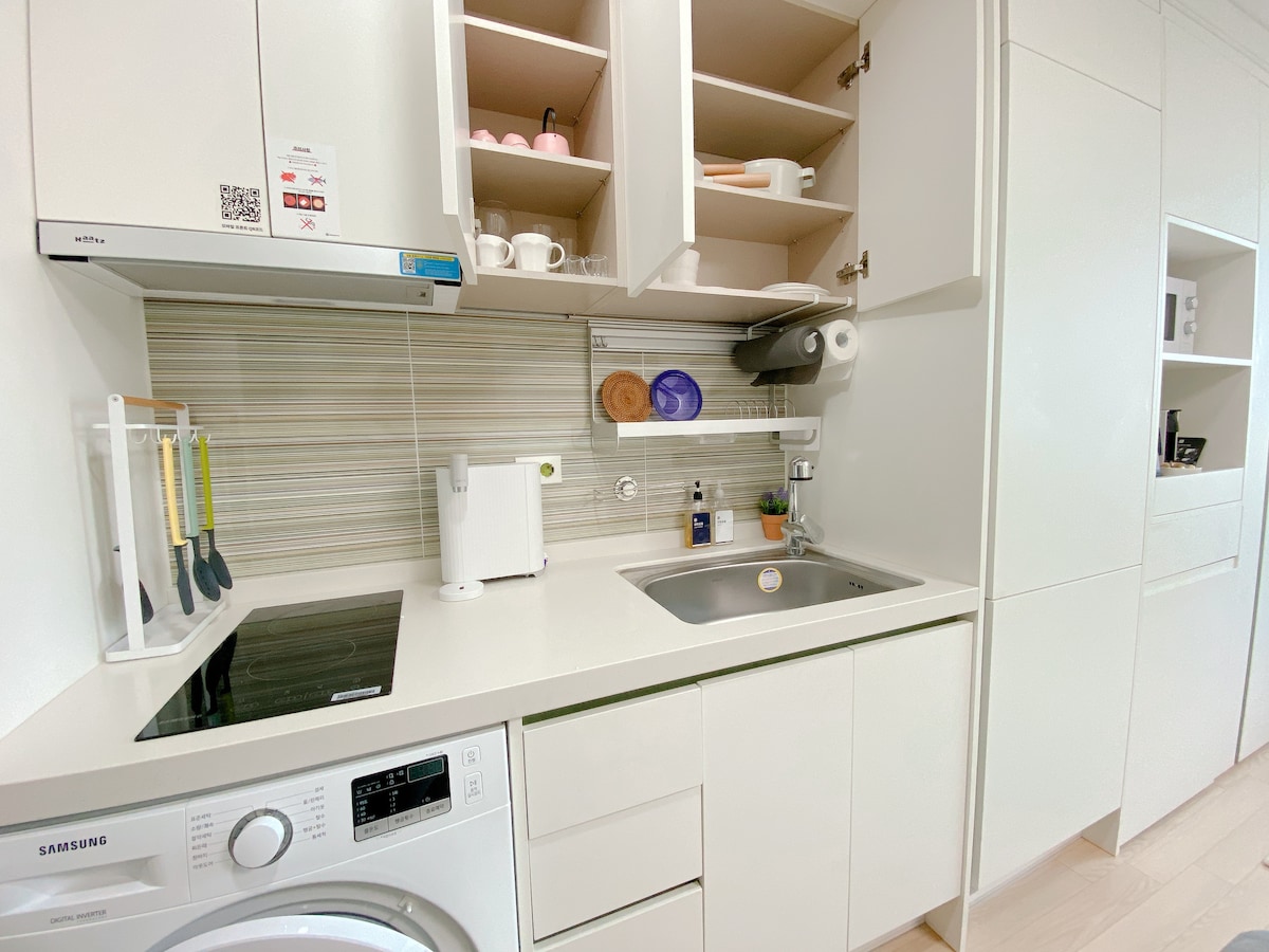 Open in 2023 This is a full-option residence - Non-Contact check-in [Bedroom] - a queen-size bed [Kitchen] - a variety of easy-to-cook cooking utensils - refrigerator, microwave, electric kettle - Washing machine, laundry detergent *we don't provide any condiments. [Bathroom] - Shampoo, hair conditioner, body wash - Hair dryer, towel - It's a bidet in the room *We do not provide disposable bathroom products (toothbrushes, toothpaste, etc.) * You can park in the building for a fee.