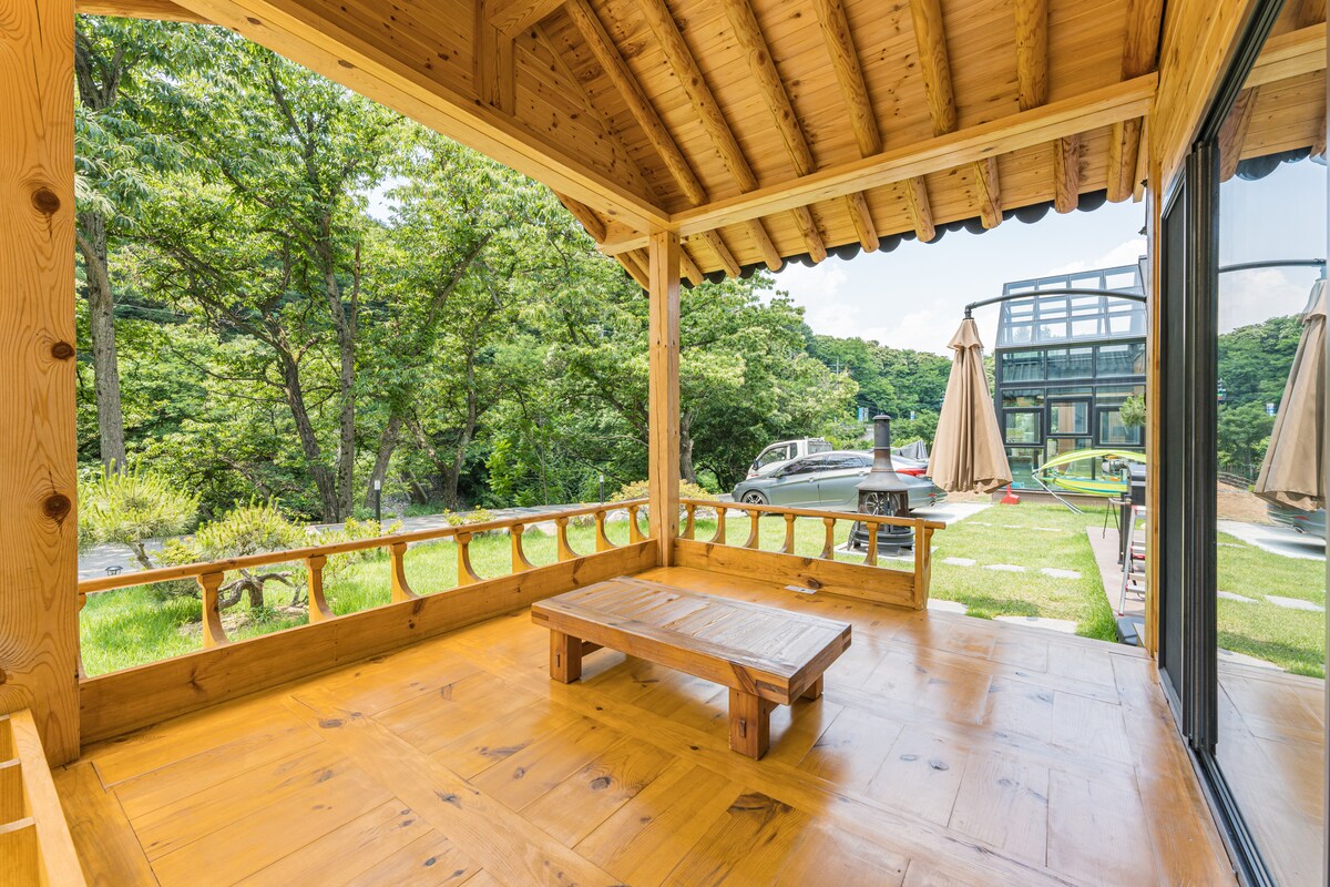 Window view Forest Queen size bed in the main bedroom, Super single mattress in the attic, The second bedroom has a queen size bed, so it can accommodate up to five people (up to six people when using a triple mattress). There is no TV in Forest. There is a separate barbecue area that is covered by rain, and there is also a fire pit where you can have a campfire. The fee for using barbecue equipment is 30,000 won. You can use all the equipment such as barbecue grill, charcoal, charcoal holder, grill net, automatic ignition torch, charcoal chimney starter, and charcoal tongs. Firewood for campfire is 10,000 won per 10 kg. โป. You are welcome to bring your own firearms and firewood. 1. Damage to furniture or indelible stains Please be careful as it can be reimbursed. 2. Please clean up and separate the garbage. 3. Cooking that smells like grilled shrimp, grilled shellfish, red fish, etc. is prohibited indoors. 4. No smoking indoors. 5. No pets allowed. 6. When using the bonfire, enter after complete combustion. 7. Turn off the boiler, air conditioner, and lights when you leave, and be sure to close the door.