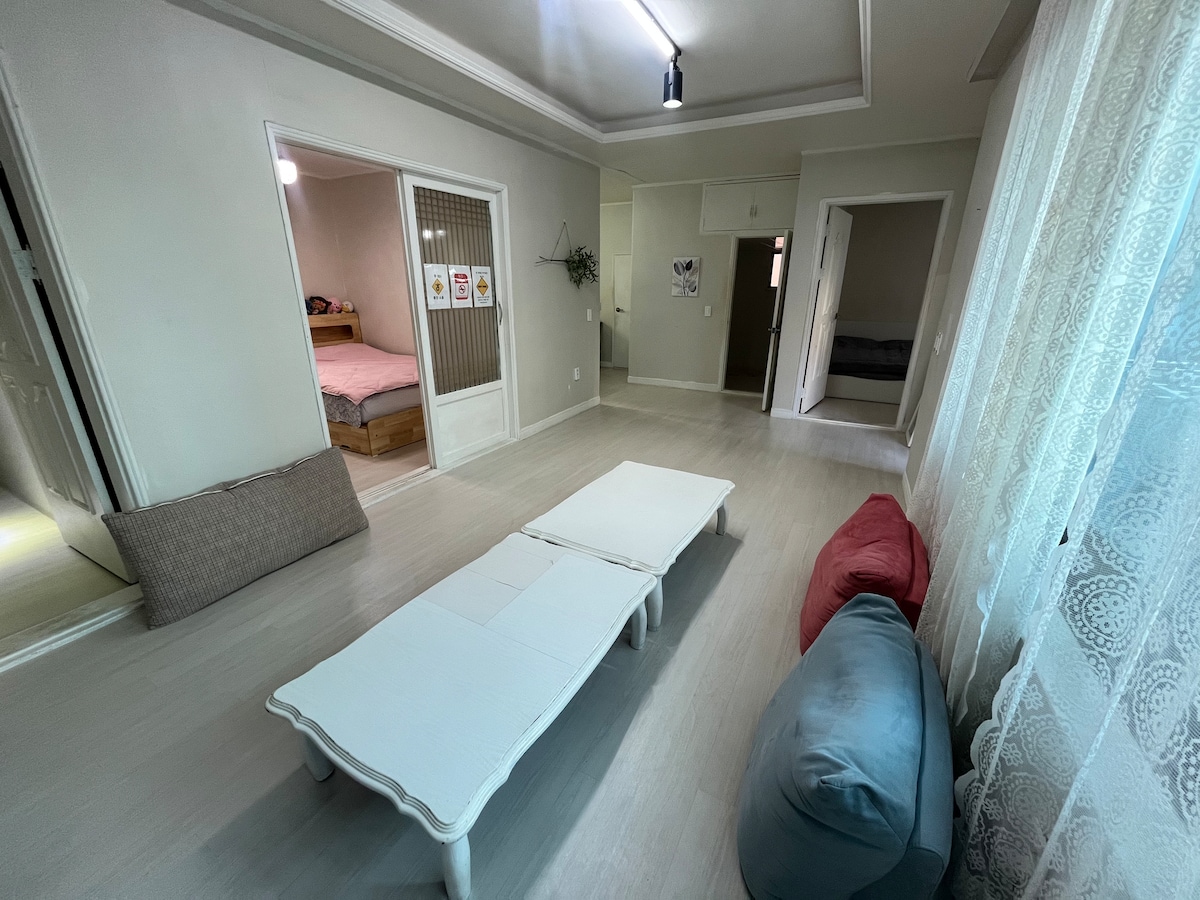 It is adjacent to the downtown area of Yeongildae Beach, and it is a 3-5 minute walk to Yeongildae Jangmiwon & Haesang Nuchen, and a 15-minute walk to Hwanho Park Space Walk. It is the first floor of a 3-story building. There is a large room, a small room, a porch, a kitchen, a living room, a bathroom, a front porch, and a back porch. There are many convenience stores, restaurants, bars, and motels within a 1-2 minute walk. This is self-check-in.