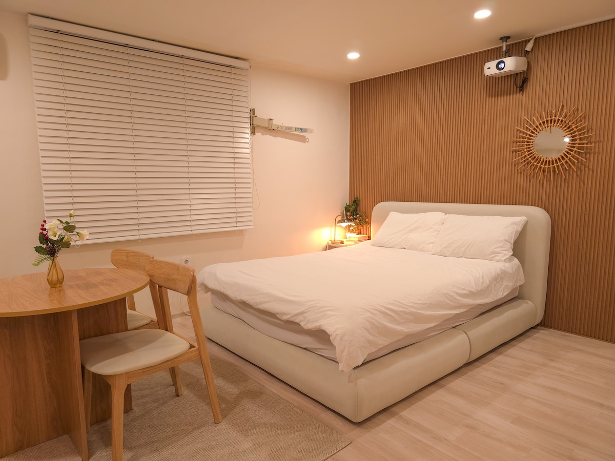 This clean and emotional place has each room in the form of a studio, and is a 3-minute walk from Exit 1 of KTX Gangneung Station across the pedestrian crossing. If you enter the accommodation on the second floor, passing the clean exterior and lobby that stands out significantly compared to the vicinity, you can rest comfortably in a clean and tidy interior. It is easy to use public transportation to go to the sea, and you can reach Wolhwa Street, a famous spot in Gangneung, in 10 minutes on foot and Jungang Market Food Village in 15 minutes on foot. Make another memory at this great value, clean, and special accommodation.