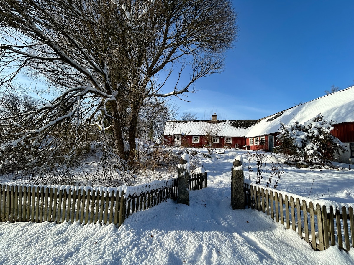 Stay centrally on Österlen just outside the village of Skåne-Tranås on a smaller farm overlooking the fields and pastures. The house is carefully renovated with a focus on charm and personality. The proximity to several wonderful beaches, golf clubs, nature reserves, food and coffee places as well as to Österlen's various sights make it easy to get around by car or bus. Wi-Fi with mobile broadband.
