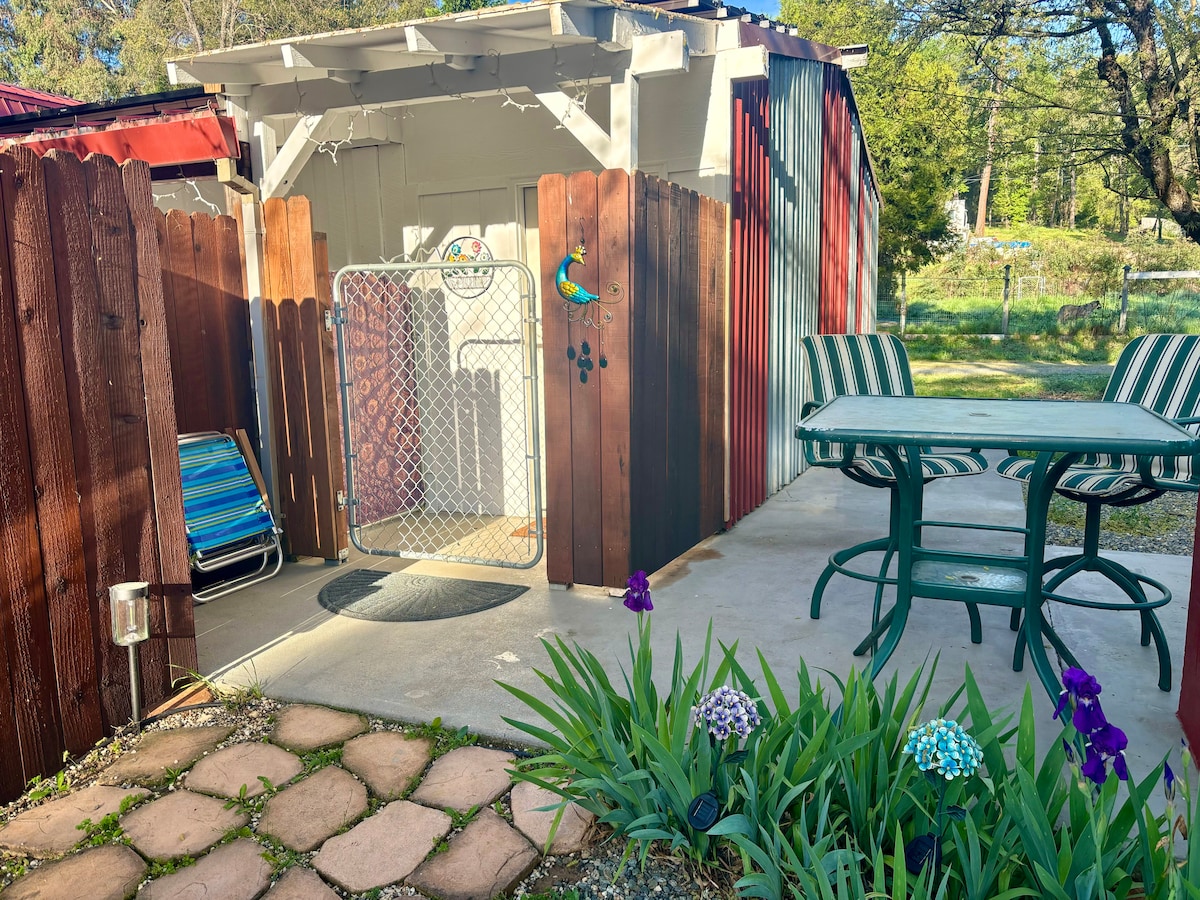 Stay in our artist suite in the Sierra foothills. The space features a two-room guest suite, a full bathroom, kitchenette, and a patio open to an oak meadow. The bedroom has a comfortable queen-size memory foam bed and a view of the waterfall and garden. Come to enjoy the calm tranquility of the countryside and listen to the waterfall and palm trees rustling. You are sure to have a restful night after a day of adventures! Level 2 EV charging is available upon request for an additional fee.