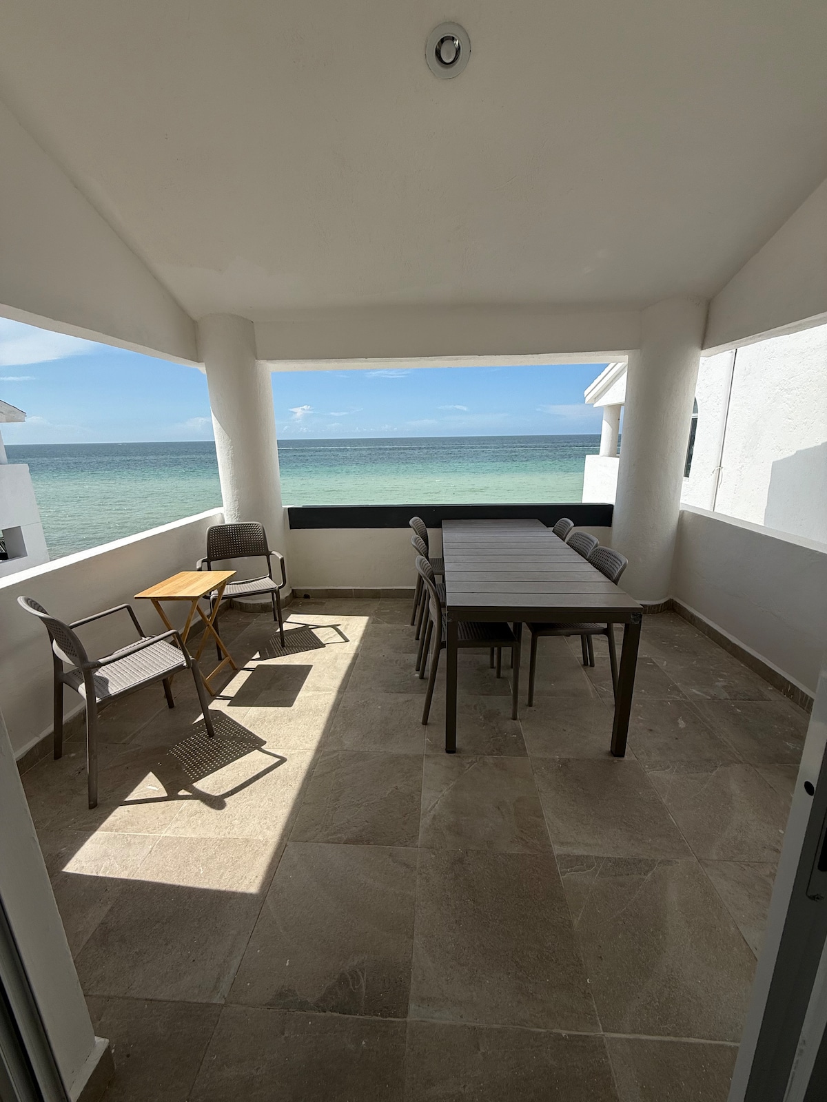 Two-bedroom apartment in the 'Playa Chacá' subdivision. Ideal for families or groups of friends. Well-equipped kitchen, comfortable living room, 50 mb/s Wi-Fi, washer/dryer... and yes, a balcony with an ocean view! > A few steps to the beach >10 minutes by bus to downtown Progreso. Shared services: -25-meter lap pool. -Rooftop terrace that offers a barbecue area with panoramic views. - A gated community with 24/7 security.