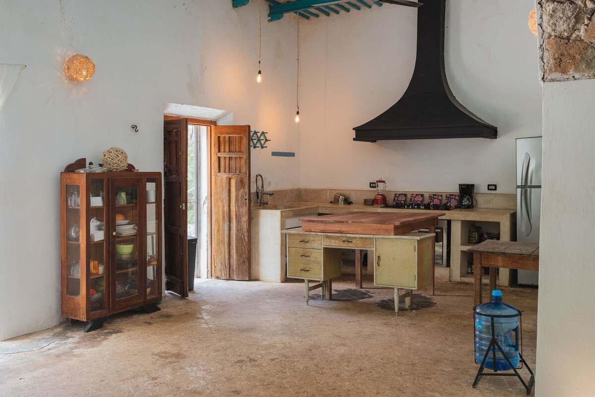Relax in a unique and peaceful way in the Mayan jungle. With a cenote on the property. Farm animals: geese, turkeys, cows, sheep, donkeys. Ideal for young children to see birds and native flora. Large and comfortable room. Tourist places less than 30 minutes away: the magical town of Valladolid or the old town of Tizimín. We have tourist cenotes nearby. Ek-Balam archaeological zone is 10 minutes away and Chichen-Itza is 40 minutes away. We include a basic breakfast. Vehicle REQUIRED to get there.