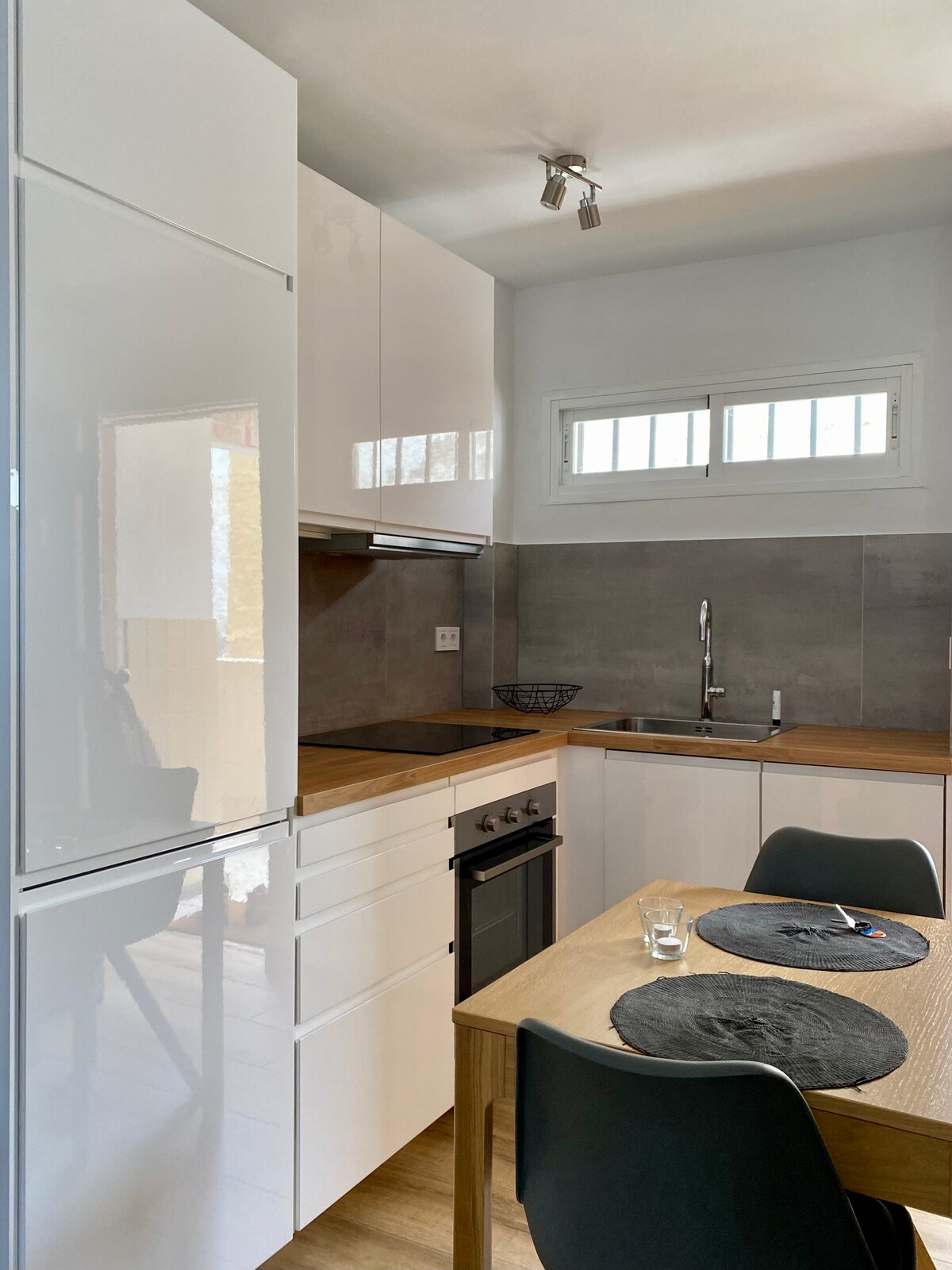 Cosy apartment recently renovated. Fully equipped, dishwasher, oven, washing machine, bathrobes... Air conditioner, windows acoustic insulation. It has a special very quiet terrace, modern decoration, a duo shower and small details that will make your stay "peculiar". Communal pool. Centrical with supermarket adjacent to building and bus stop very near.