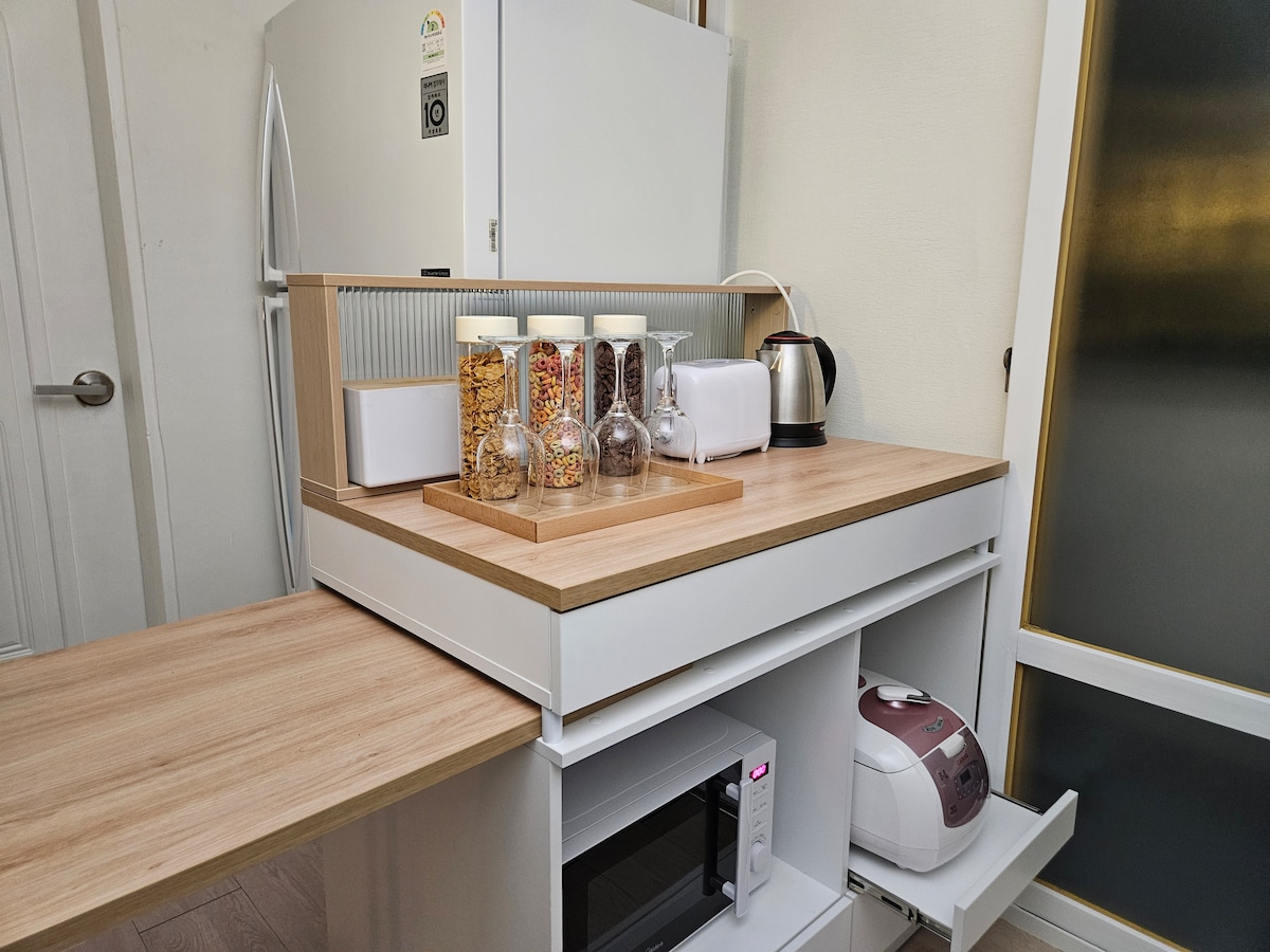 We are committed to providing comfortable and clean bedding and accommodation cleanliness. In addition, to create a relaxing space, we have provided a massage chair and prepared a living room with a café atmosphere. :) It's a place to stay for a while, but we're doing our best to make it a comfortable rest! Whether you're a couple, on a business trip, or on a family vacation, if you're looking for a relaxing getaway, you're welcome here! Welcome!! * We clean and prepare our accommodation thoroughly each time to ensure a comfortable stay for our guests!!