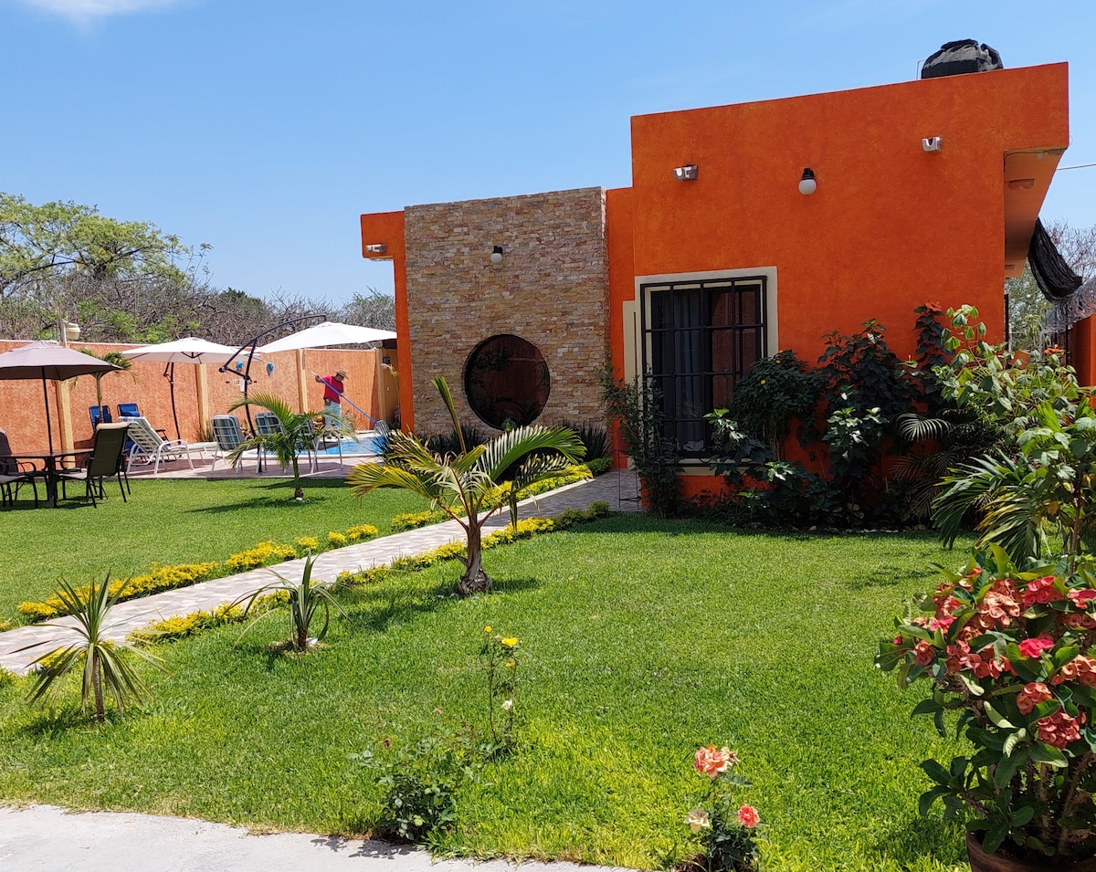 You will love our house, you can enjoy some days of relax and fun with your love one, your family or with a group of friends. Private pool and parking. 15 min away El Rollo water park, Tequesquitengo and 25 min to Jardines de México. Stay in the house and bask by the pool watching the colors of the sunset and sunrise. Discover the sounds of the Morelos different birds while you wake up to this beautiful state of Mexico