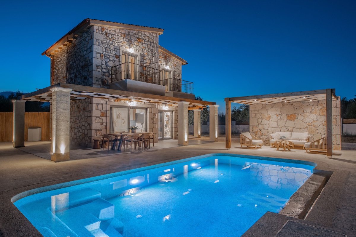 Escape to this serene 2-bedroom villa, perfect for up to 4 guests. Just meters from the sea, the villa offers breathtaking views of the Ionian Sea from every room, including the cozy living room. Wake up to the sound of the waves and soak in the peaceful atmosphere of slow living. The villa features a private pool overlooking the sea, creating the perfect spot to unwind and enjoy the sunset. With its tranquil setting and modern comforts, this is your ultimate seaside retreat.