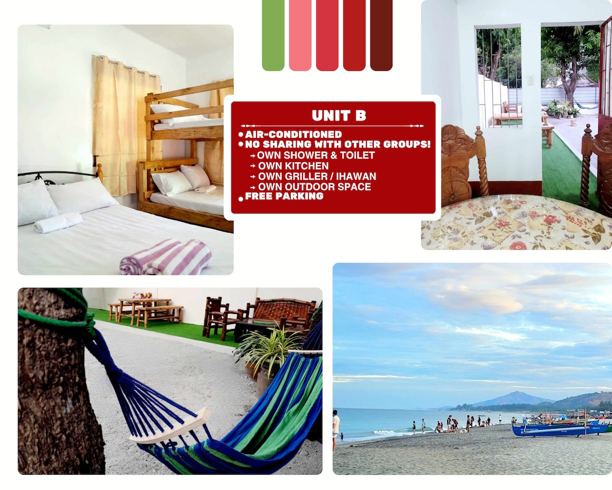 📍2-minute walk to the beach 📍just a kilometer away from the popular Liwliwa Beach ENTIRE SPACE, ONLY FOR YOUR GROUP! - Spacious property, fenced and gated - Fully-equipped Kitchen, Griller - Private outdoor space - 3 toilets and 3 showers - Parking onsite ------------------ Welcome to UGALDE'S COASTAL CABINS in San Felipe, Zambales. LOCATION: 15°03'39.6"N 120°03'40.9"E (Copy and paste into Google Maps.)