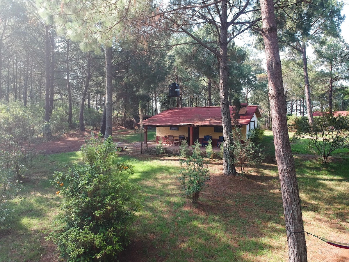 ubicada en el bosque a 10 minutos en coche del centro de MAZAMITLA, excelente opción para pasar una tarde/noche libre del ruido y la gente de la ciudad, gasolinera y OXXO a 5 minutos. capacidad 8 HUESPEDES. para negociar precio de pareja llamar a MARCELA CHAVEZ, solicitar número vía mensaje!