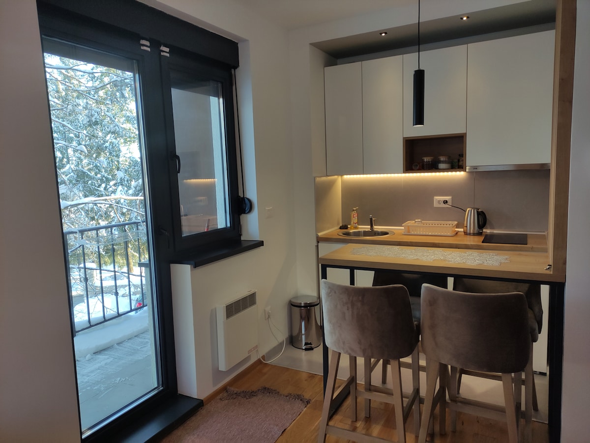 Luxurious modern apartment in the heart of Zlatibor! Located in a quiet tourist complex just a few minutes walk from the center, Gold Gondola, lake and ski slope. Perfect location for a vacation at any time of the year. ◆Secure garage parking (free) ◆View of Tornik ◆Smart TV, A/C, washing machine + dryer, dishwasher, coffee maker ◆Wellness & Spa within the complex (additional charge) For luxury without the crowds, the perfect choice for relaxation. Zlatibor - everything at your fingertips!