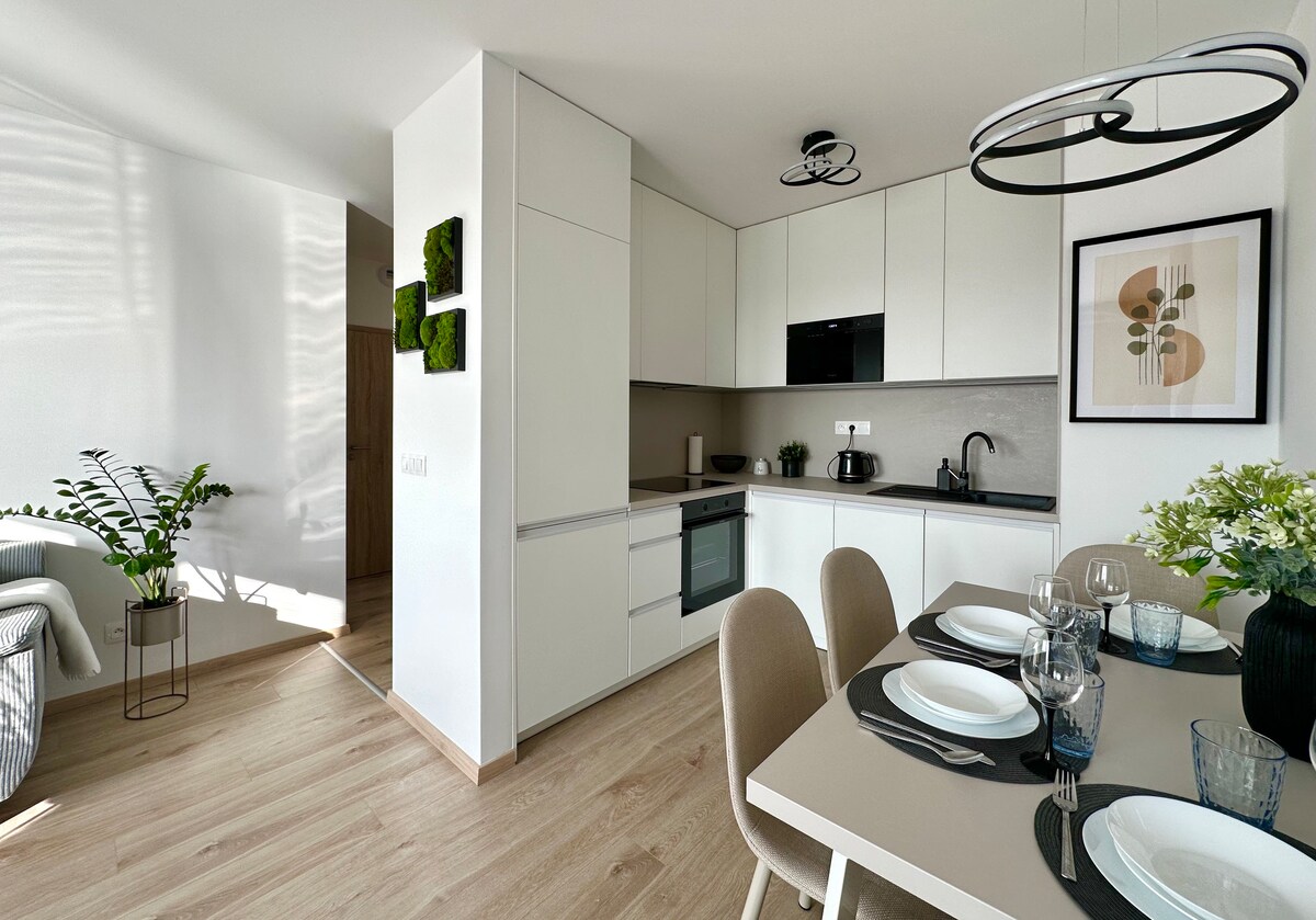 Enjoy your stay in our new, fully furnished 1-bedroom apartment (2 rooms total) with a balcony. Private parking is included. Located just a 10-min walk from the airport and 5 min from the bus. Groceries are 2 min away. The flat features a living room with a sofa bed and a bedroom with a double bed (max 3 guests). The balcony with city views is perfect for morning coffee or evening wine. Close to Avion Shopping Park and the highway.